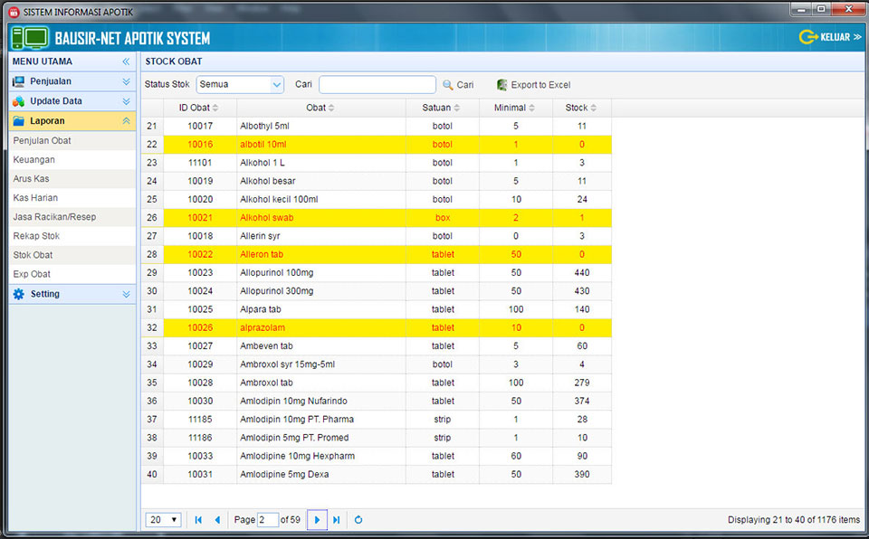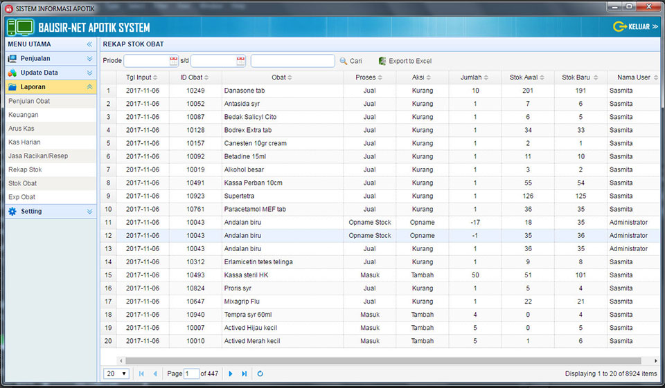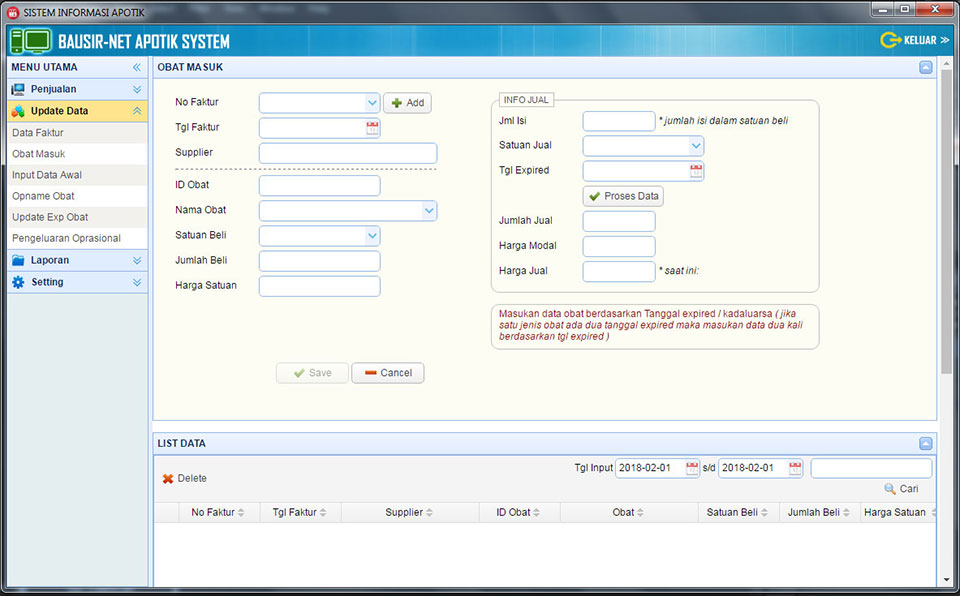 Aplikasi Bausir-Net Apotik versi Personal Desktop khusus digunakan untuk satu komputer baik digunakan sebagai kasir penjualan, update data obat masuk, master harga dan laporan jual beli apotik, cocok untuk apotik skala kecil dan menengah. sudah mendukung printer thermal atau printer kasir dan scanner barcode serta mendukung proses import dan export file excel.